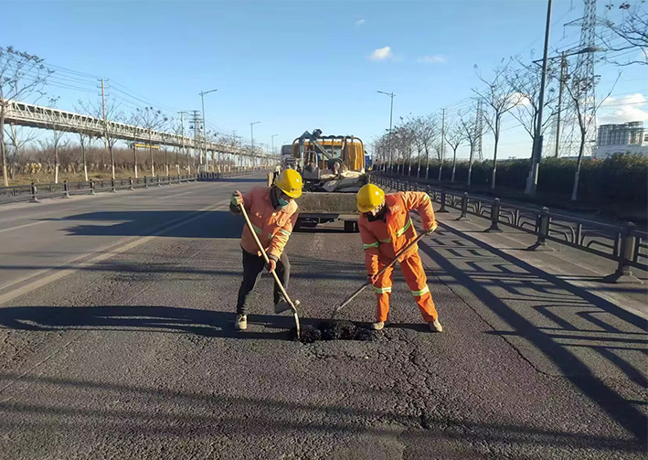 受近期冬季雨雪冰凍天氣影響,徐圩新區(qū)部分道路出現(xiàn)瀝青路面破損、龜裂等現(xiàn)象嚴(yán)重,坑洼的路面不僅影響道路通行安全,也影響了城區(qū)形象。為防止路面坑槽及延伸病害的快速發(fā)展,近日,市政分公司及時(shí)組織兩班人馬,10名道路養(yǎng)護(hù)人員,加班加點(diǎn)對(duì)新區(qū)破損瀝青路面進(jìn)行全面修補(bǔ)。