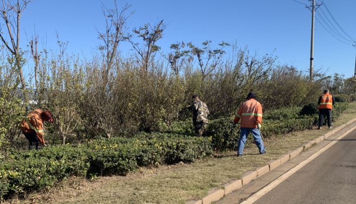 綠化班組每日出動40余人次,采取人機結合方式,對綠化帶內雜草進行全面清理,對綠植、灌木、草坪進行全面修剪工作,提升園林綠化精心化管護水平。結合當前實際,科學施肥合理安排澆水時間、澆水量,有效防止因干旱造成綠化植物死株死苗現象出現。為強化科學養護,提升景觀。搶抓好天氣,對管轄園區綠植物開展修剪行動,除枯死枝、折斷枝、病蟲枝、下垂枝,死樹、死苗、雜物進行清理,促進植物正常生長,有效提升綠化景觀效果。